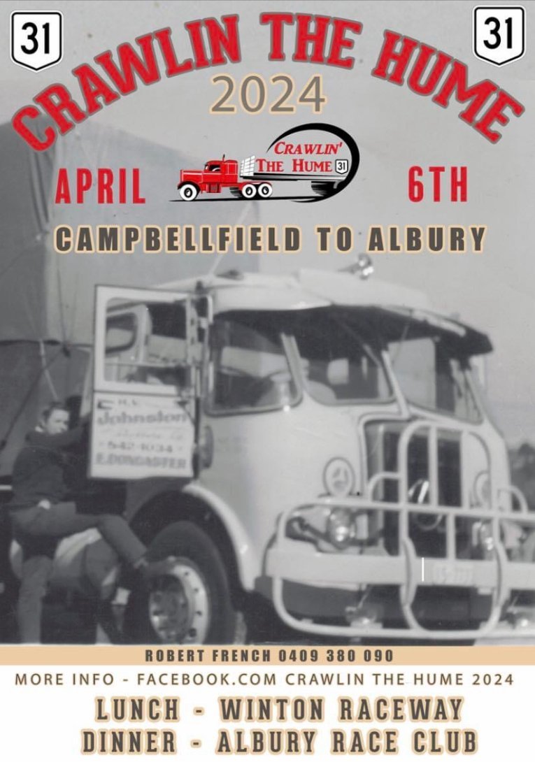 Crawlin The Hume is an event held in Victoria for the truck drivers of Australia to display their classic trucks and celebrate the history and relive the memories in a convoy up the Old Hume Highway.